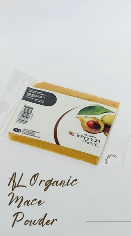 The nutmeg tree (Myristica fragrans) is a tropical evergreen that produces both nutmeg and mace. Mace is the red lacy coating (called the aril) that encases the nutmeg seed. When the tree's fruit reaches maturity, it splits open and reveals the aril and seed. The fruit is harvested and the aril is removed by hand, flattened, and left to dry outside for 10 to 14 days. The red aril takes on an amber-, yellow- or orange-brown color as it dries and, when left whole, is called a "blade" of mace. The blades are sold as is or processed into a ground spice.